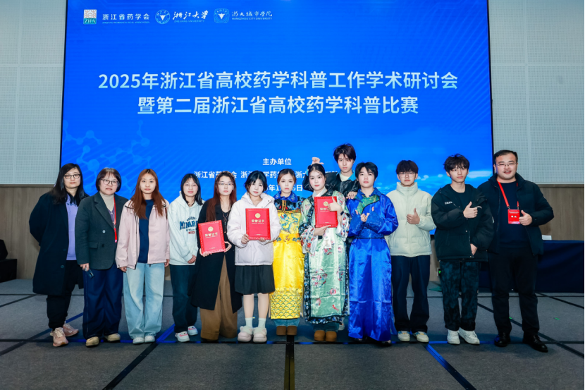 12月6日,2025年浙江省高校药学科普工作学术研讨会暨第二届浙江省高校药学科普比赛在浙大城市学院落幕。本届赛事汇聚了来自全省13所高校的21支团队同台竞技。我校探花av