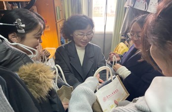 学生宿舍里,她亲切询问同学们假期生活过得怎么样、返校后是否适应、新学期有什么计划和目标,并了解课程安排和学习情况。交谈中,她勉励同学们珍惜大学时光,夯实专业基础,注重身心健康,在学好知识的同时,也要学会做人、学会生活。她为同学们送上暖心礼包,并祝愿大家在新的学期里学业进步、生活愉快、全面发展。