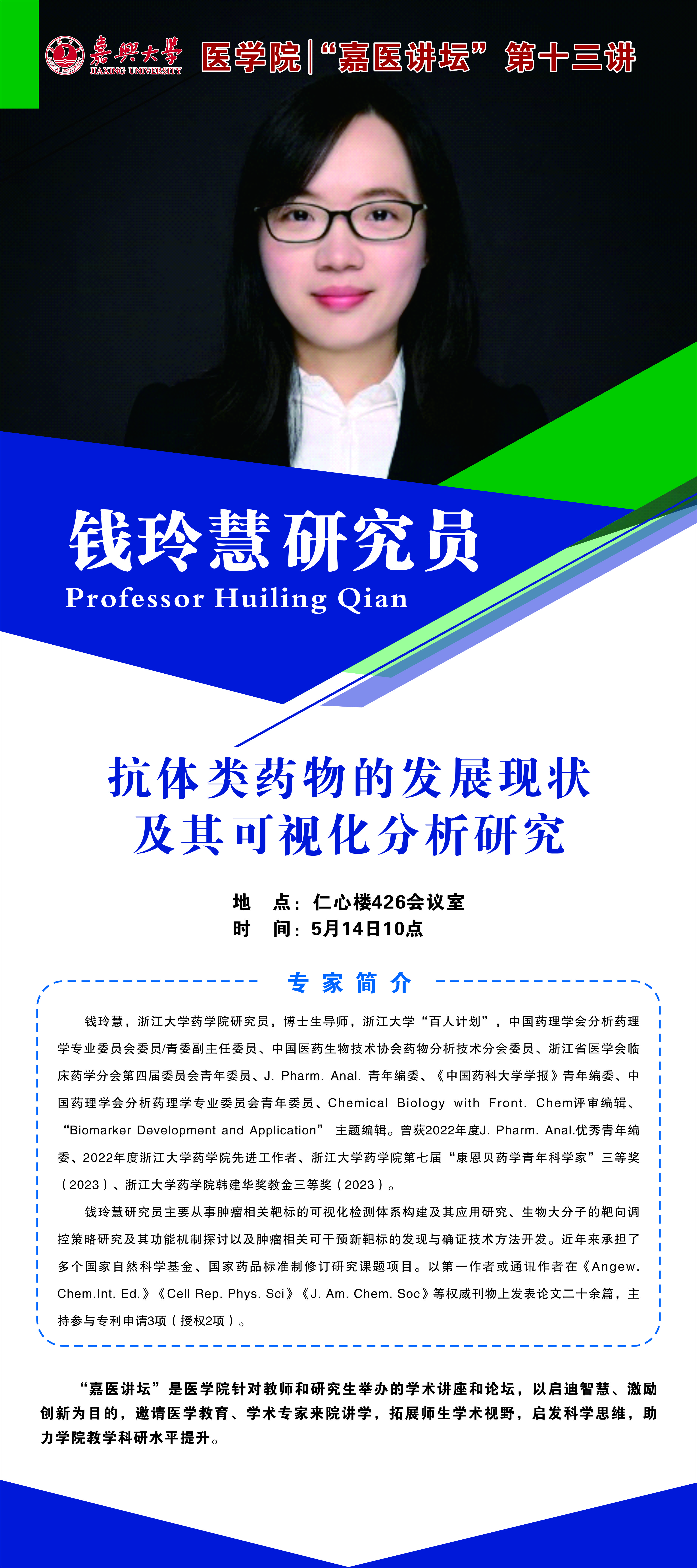 嘉医讲坛第十三讲:钱玲慧研究员